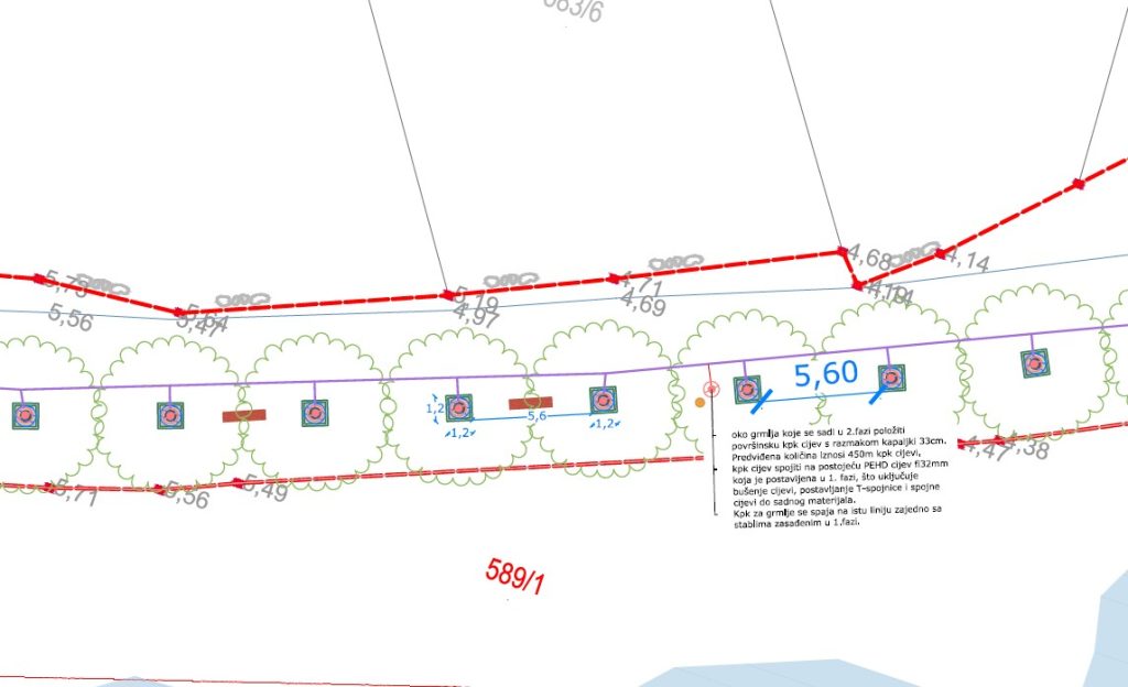 Za sav je biljni materijal predviđen sustav navodnjavanja sistemom kap po kap.